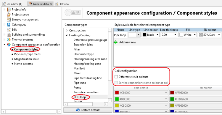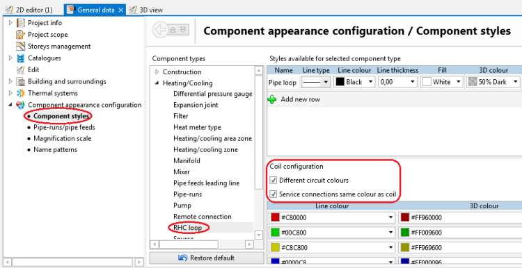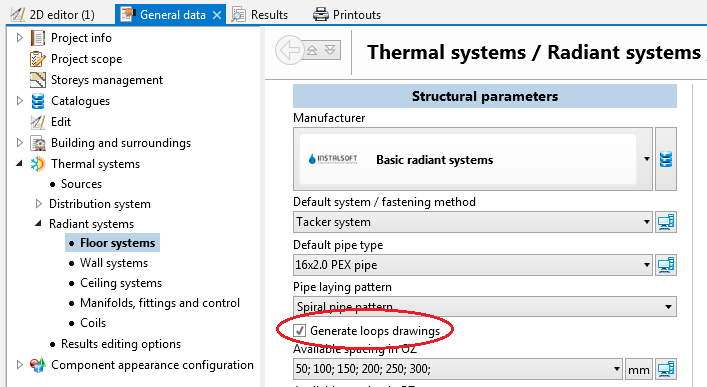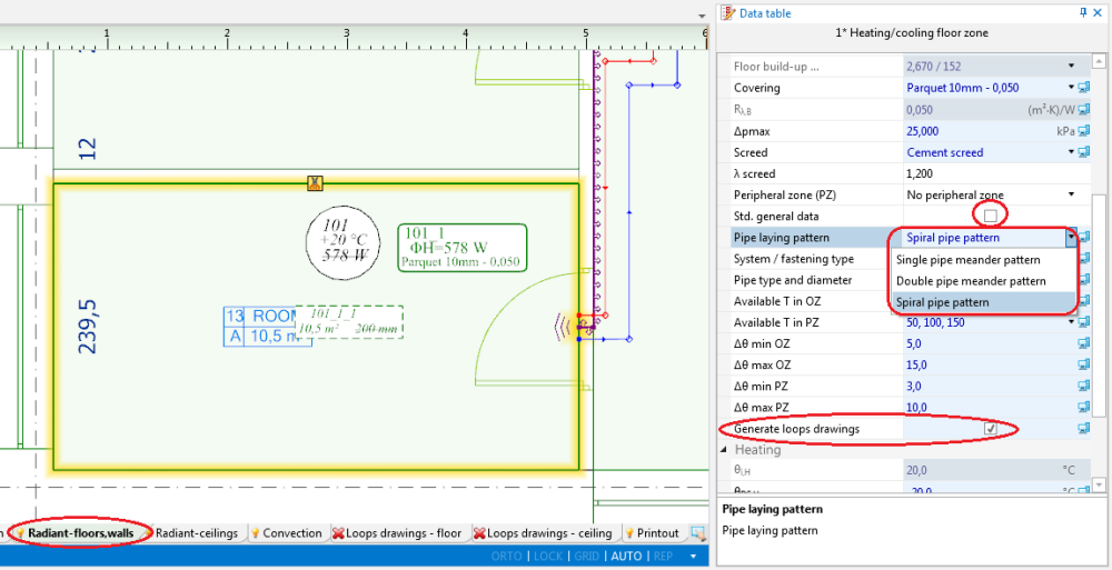 1. Loops drawings - General data - Data table for component Heating/Cooling Floor Zone, when working in the Rad.-floors,walls/Rad.-ceilings editing range, enables: