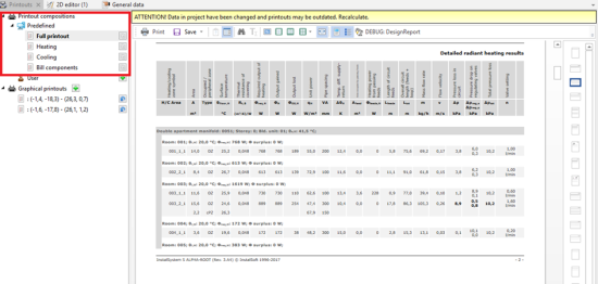 Printout layout other than the standard layout can be set. The layouts include groups of indicated printout pages without affecting their content and graphical style. In order to define such an expected layout, access to any InstalSystem 5 version is necessary.