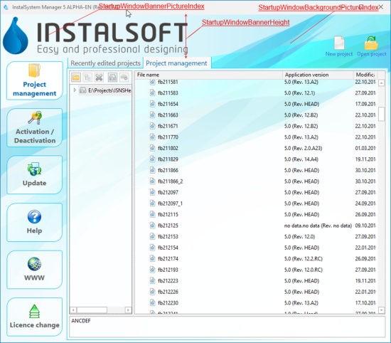 - Background (StartupWindowBackgroundPictureIndex) and top part (banner) (StartupWindowBannerPictureIndex + StartupWindowBannerHeight) are configured separately