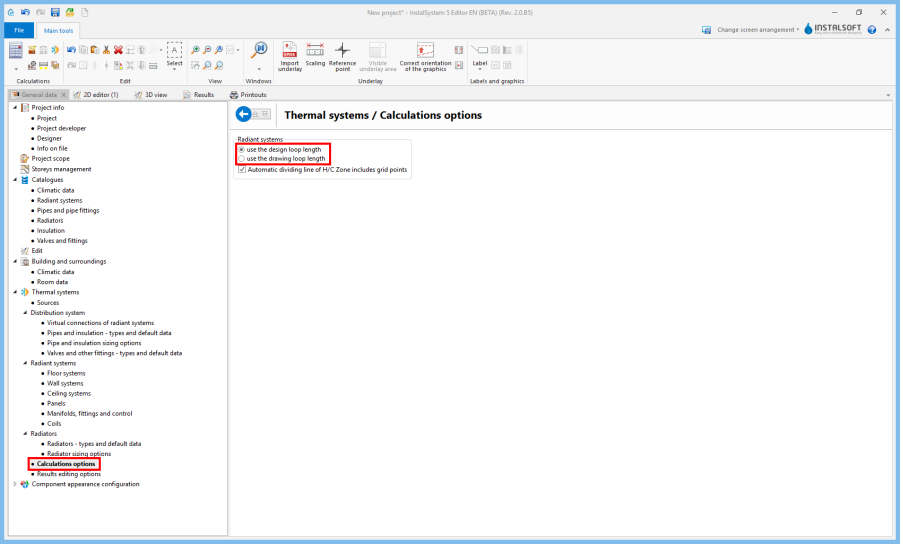 1. Additional options - Zmiana sposobu uzupełniania rysunków o pętle instalacji płaszczyznowej.