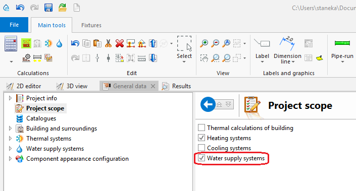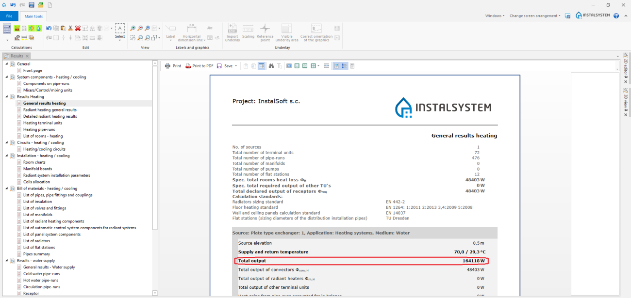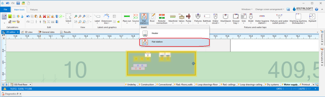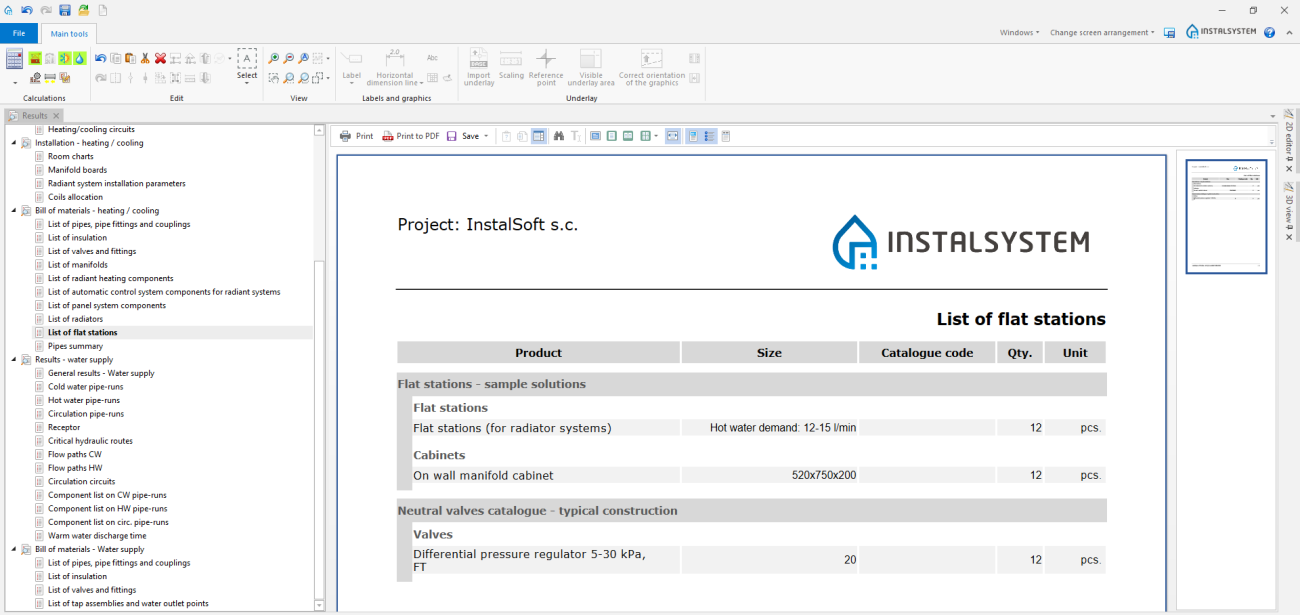 • Tap water systems - if calculations for the flat station and the supply system should include flow rate of a sanitary system designed with InstalSystem 5