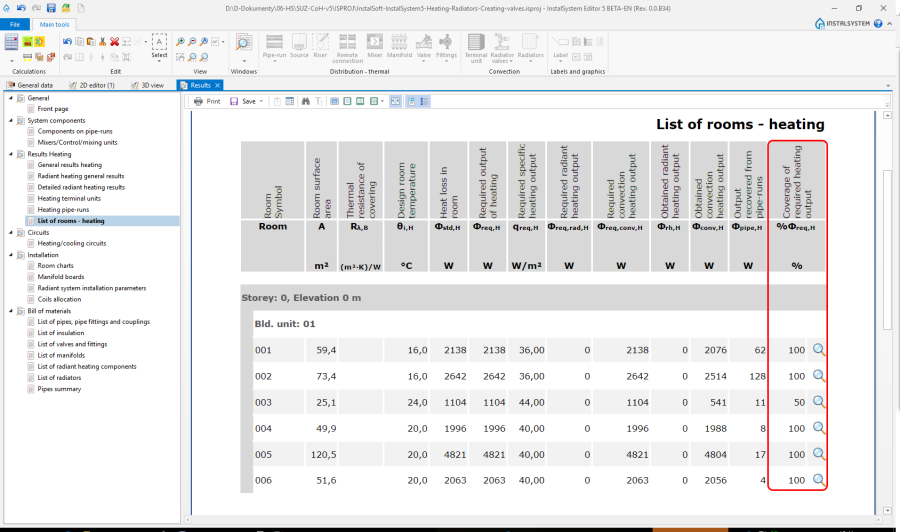 - Adjust contribution of radiators in heat load coverage in rooms (Contribution [%]).