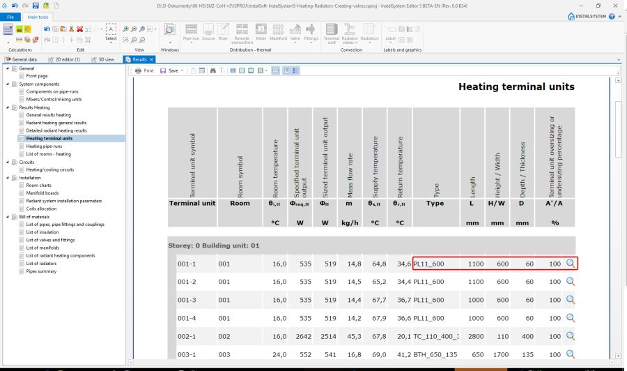 | Calculation results | Complete range of calculation results, xls Complete range of available printouts, pdf Heating calculation results, pdf Bill of materials, pdf |