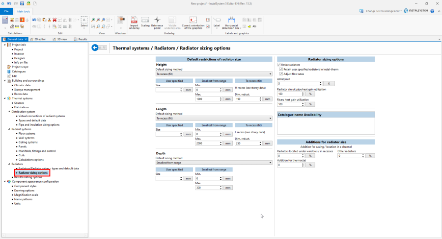 - Change radiator sizing method or default limitations of: Height, Length or Depth.