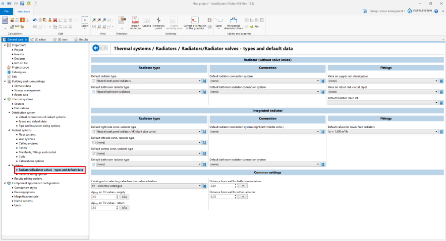 - Thermal systems/Radiators/Radiators/Radiator valves - types and default data tab – append default types:
