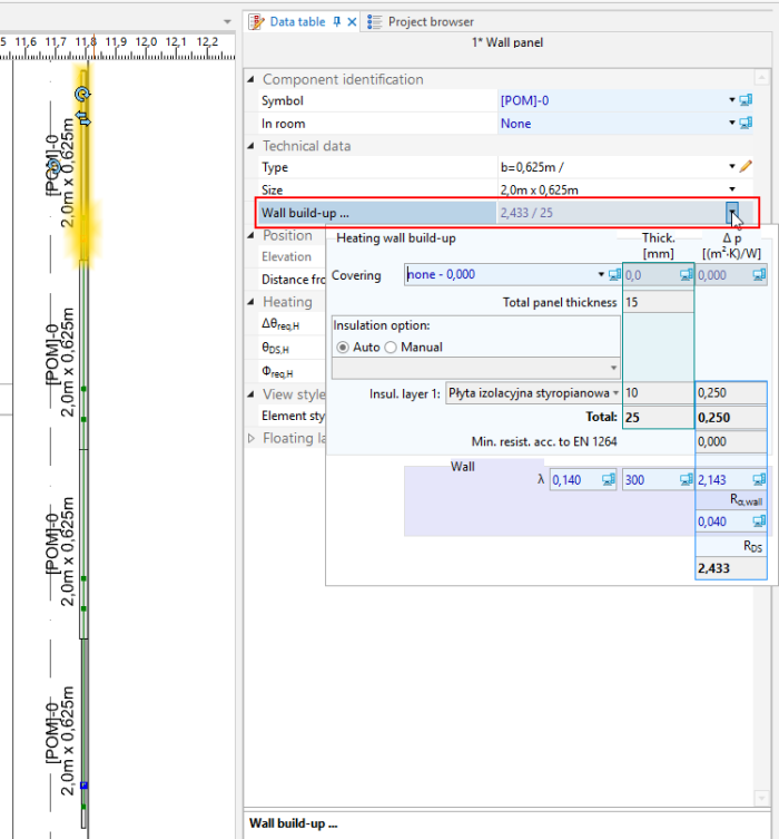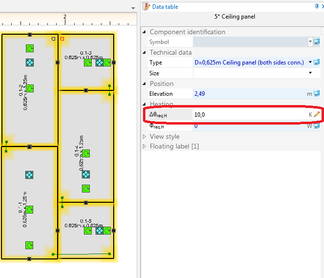 - When heat demand coverage results are satisfactory, insert the remaining system components (source, pipe-runs, fittings) and connect them to the panel system.