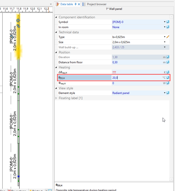 - Thermal systems/Sources tab – verify parameters: Default source use and supply temperature (θs,H/ θs,C rad).