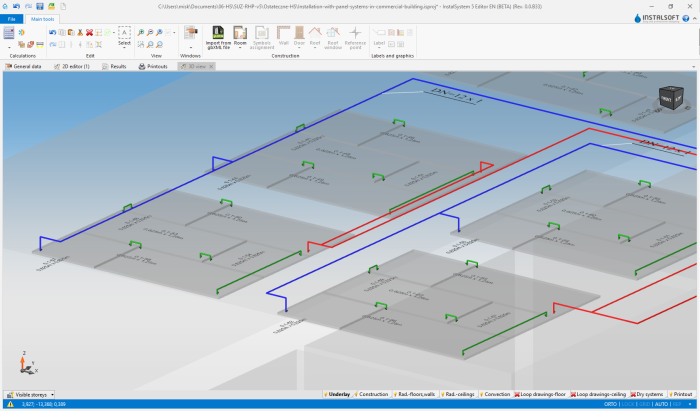 - Flow balancing of the system – Results window – Circuits/Heating/cooling circuits tab