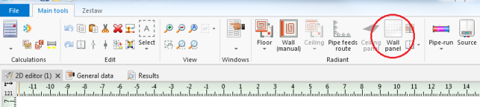 - Insert a panel using the Wall panel icon available in the ribbon of the Radiant group.
