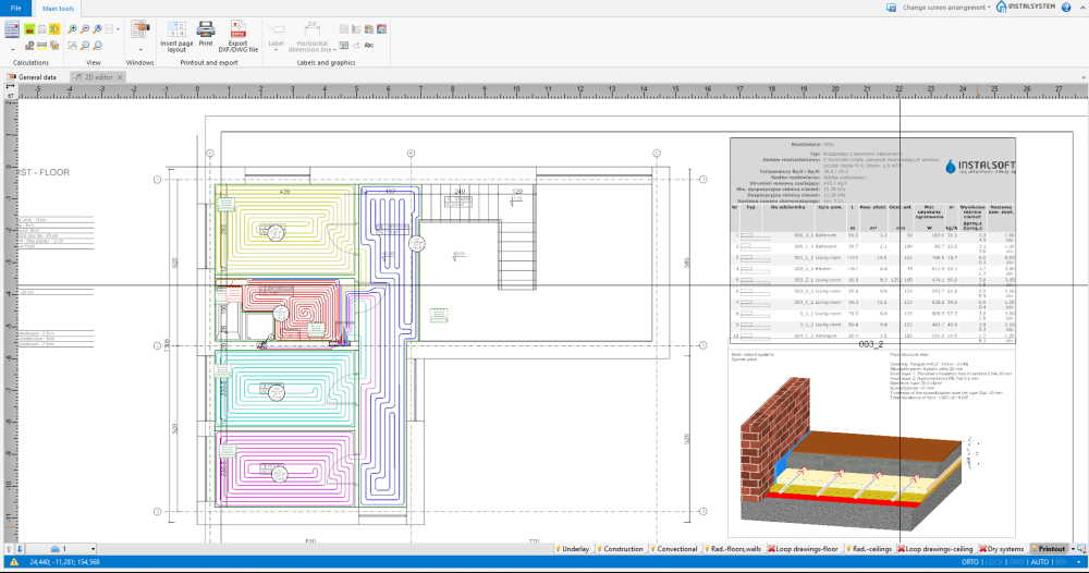 Installation with underfloor and wall radiant heating system in single family building, isproj |