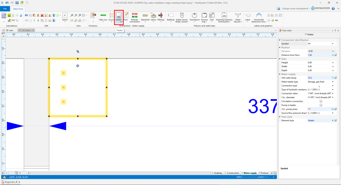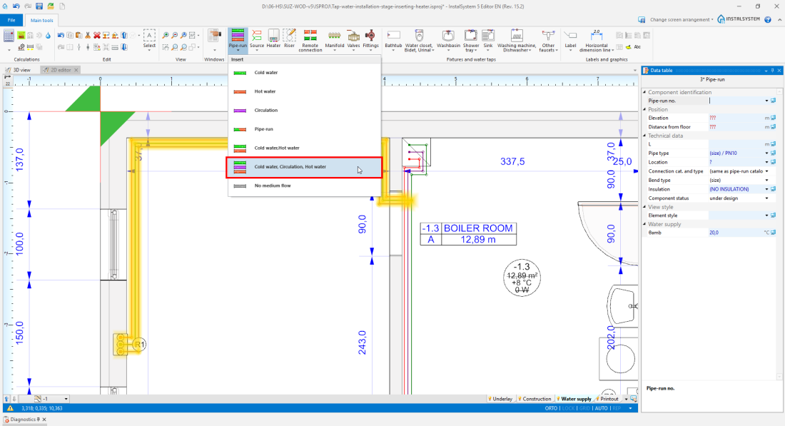 Correction of general data is not necessary if we begin work with a template file dedicated to such a scope. Correction is necessary if we begin work with a file that has been elaborated with a configuration without tap water systems module.