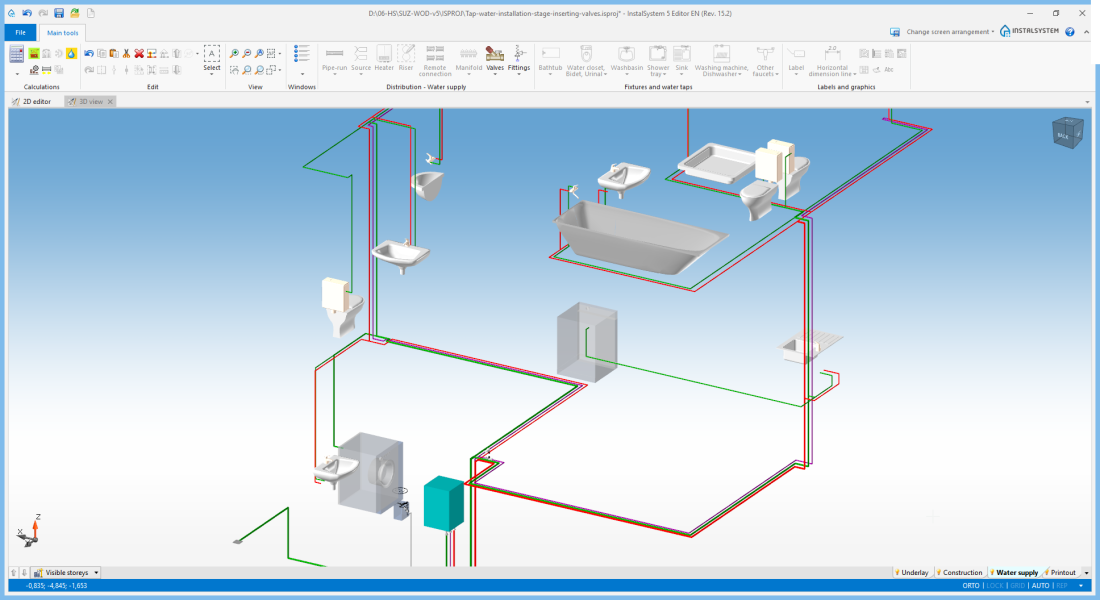 The article presents how to design internal sanitary systems (hot, cold water, hot water circulation piping). The example is based on a project prepared for a three-storey unifamilar house with a basement.