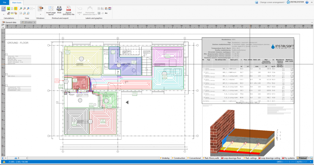 | Project files | Installation with underfloor and wall radiant heating system in single family building, isproj |