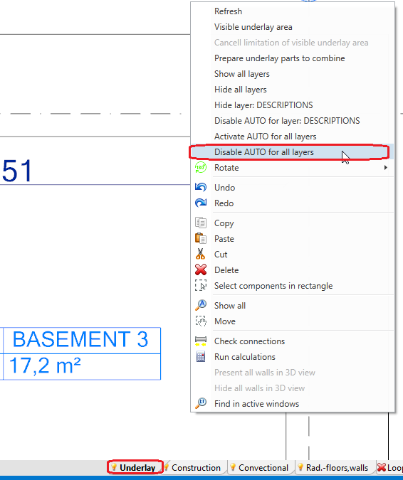 3. Layers for AUTO mode - kliknąć prawym przyciskiem myszy na element podkładu i wybrać polecenie Disable AUTO for layer: %s.