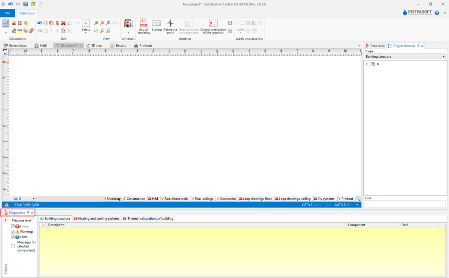 - messages of the highest importance. All errors that occur during project development must be eliminated, otherwise the results may not be complete. There are two types of errors: critical errors, which halt calculations, and errors that do not interrupt calculations, their occurrence, however, may lead to unreliable results. - Warnings
