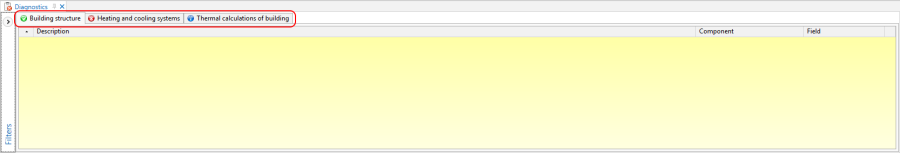 - Selected diagnostic messages in the Field column indicate to which specific fields in the Data table or in dedicated editors the diagnosed values apply.