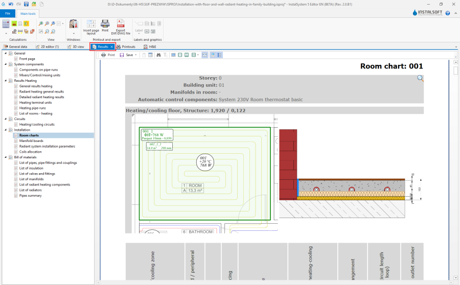 - Tabular calculation results are presented in a tree structure divided into sections. The number and contents of a section corresponds to the scope(s) of the project and the result sought should be looked for in the appropriate section. Result viewing is facilitated by a number of display control functions: view single pages, view multiple pages, navigate using miniatures. Tables of results can have their headings hidden, and bills of materials can be displayed with additional graphical and descriptive information on the products.