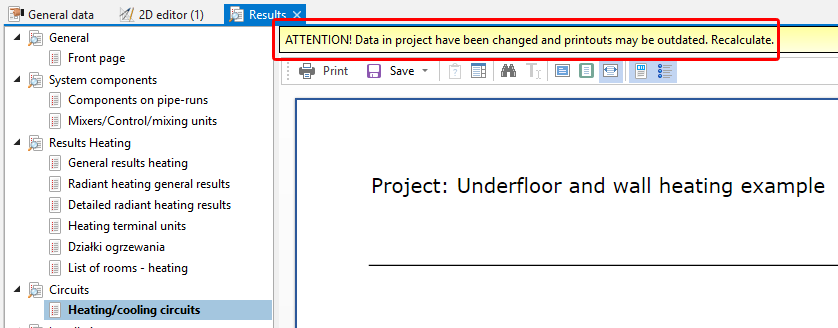 Refreshing the data in the project and the calculation results