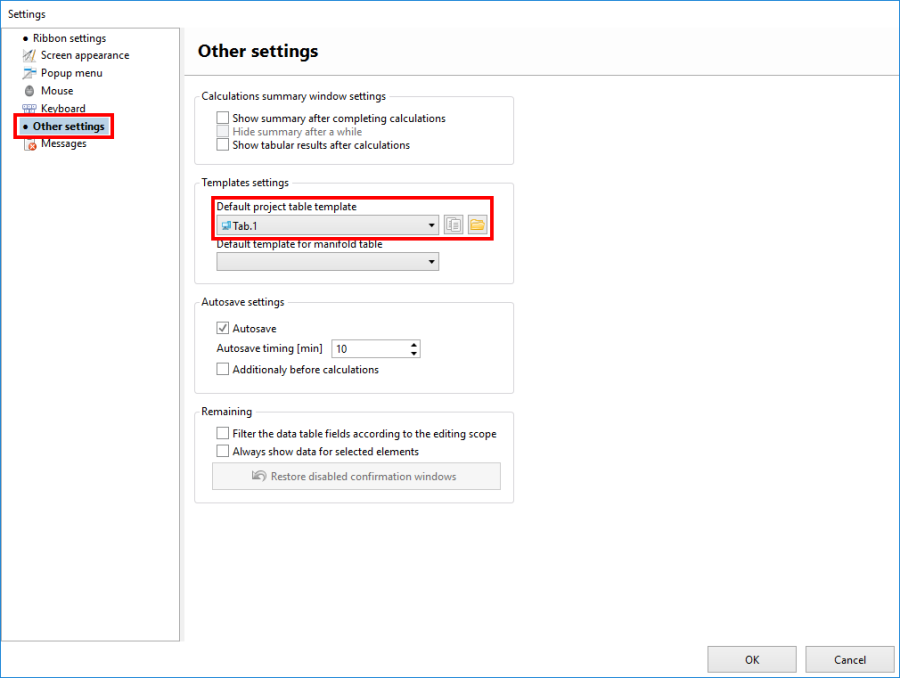 - Settings of Default project table template is available in window Settings in section Other settings.