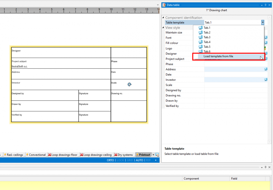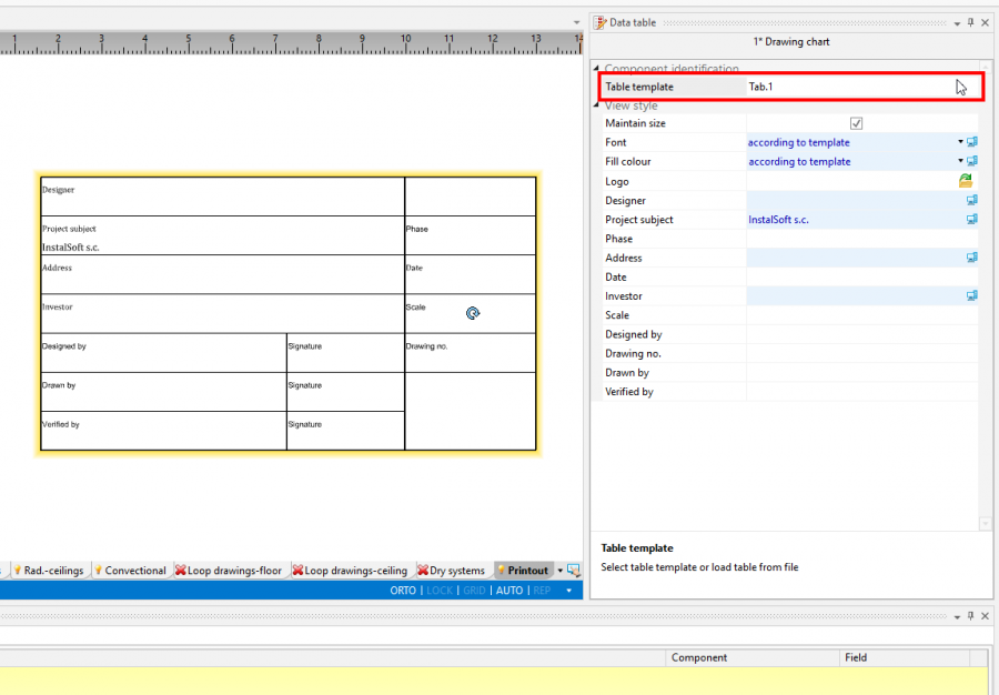 Layout table comes from one of available templates in program. Template selection is made in Data table.