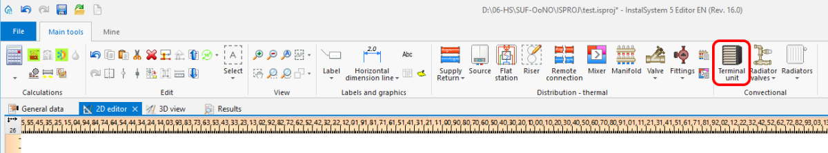 - The Terminal unit element is available in the program in the Convectional section on the Main tools ribbon, for all active Convectional editing scopes.