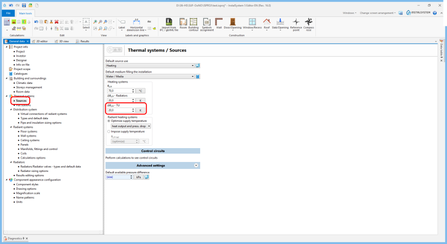 The program does not perform sizing of such units; thus, the obtained thermal output and Temp. drop on TU are always equal to the values that have been input.
