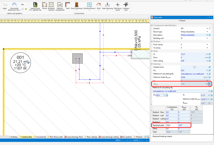If a unit has been drawn within a room, and it is e.g. a water heater, its thermal output may be excluded from the room thermal balance.