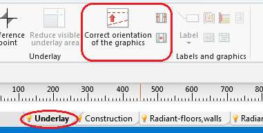- If necessary, change the orientation of the unerlay using the Correct orientation of the graphics icon.