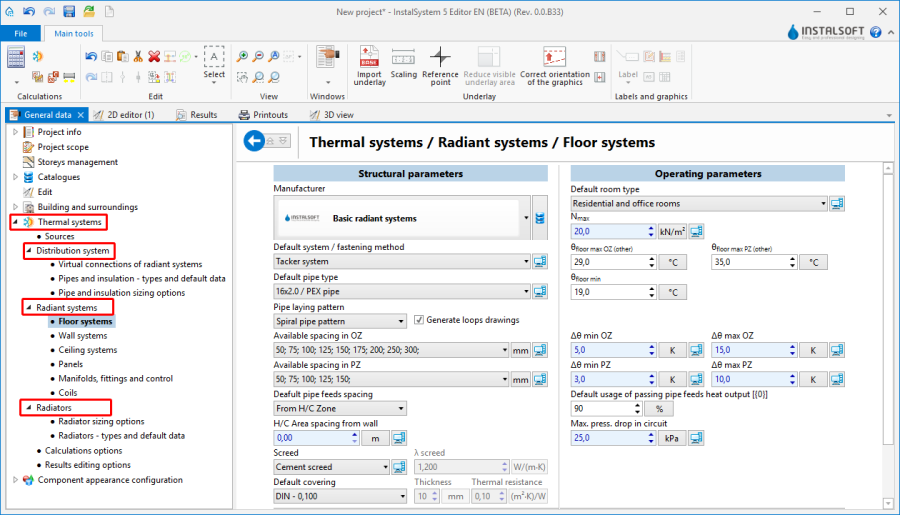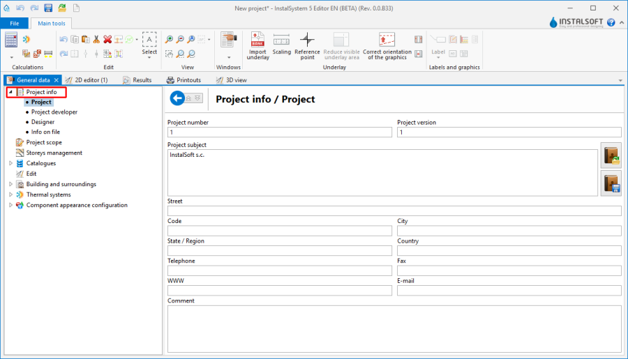 General data may be modified on every stage of project creation. Detailed information on the principal scope of the General data section to be edited, depending on the type of system being designed or on the type of calculations performed, are given in the articles concerning the particular applications of the package.